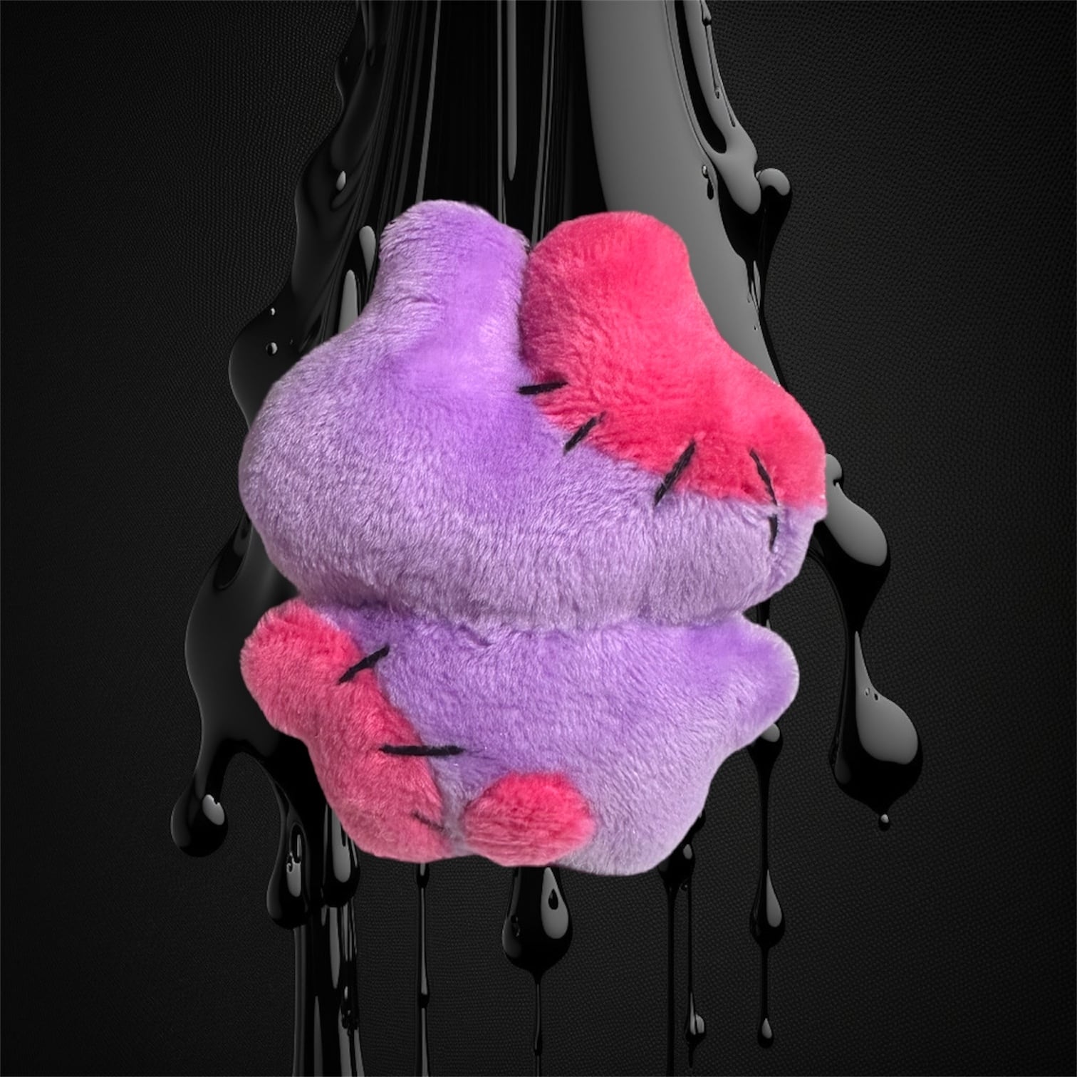 紫とピンクのツギハギボディに、どこか切ない目。